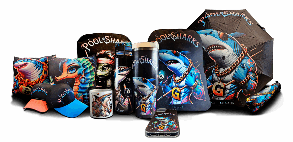 Dive into the deep with the “Pool Sharks” collection—inspired by the characters and crew that chalk up their cues and battle it out on the pool table! This line brings the ocean to life with vibrant designs, colorful characters, and a splash of style that makes every piece as creative as the show itself. Whether you’re a fan of the show, love the game, or just want to rock something fresh and unique, “Pool Sharks” lets you wear the vibe of the deep-sea pool scene wherever you go.