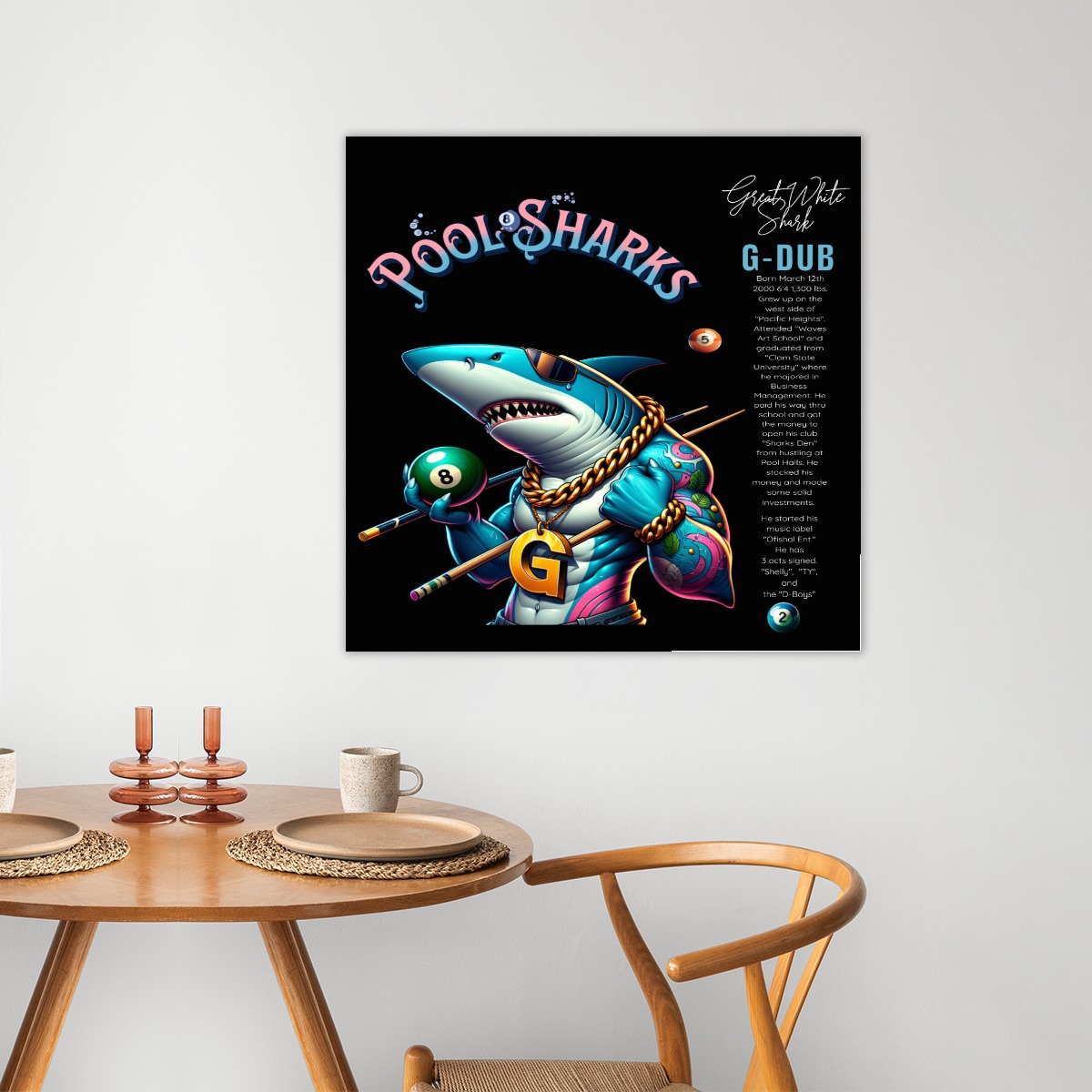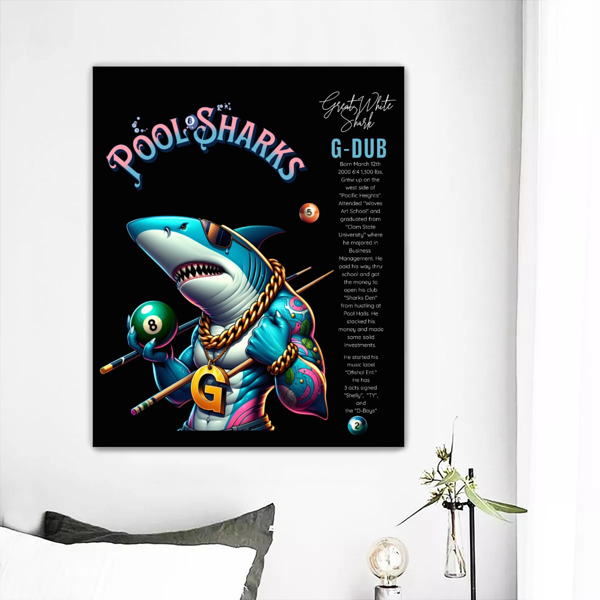 Be the first to review “Large Frameless Pool Sharks/G-DUB single-piece mural”